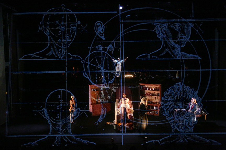 Anatomy Theater is a contemporary reflection on this historical spiritual carnival. It is a moral dissection, with images of bodies and environments projected on scrims, 4 singers – a lecturer, a demonstrator, the caretaker of the anatomy hall, and the corpse itself – 9 musicians and a text drawn from surviving documents and period moral tracts.