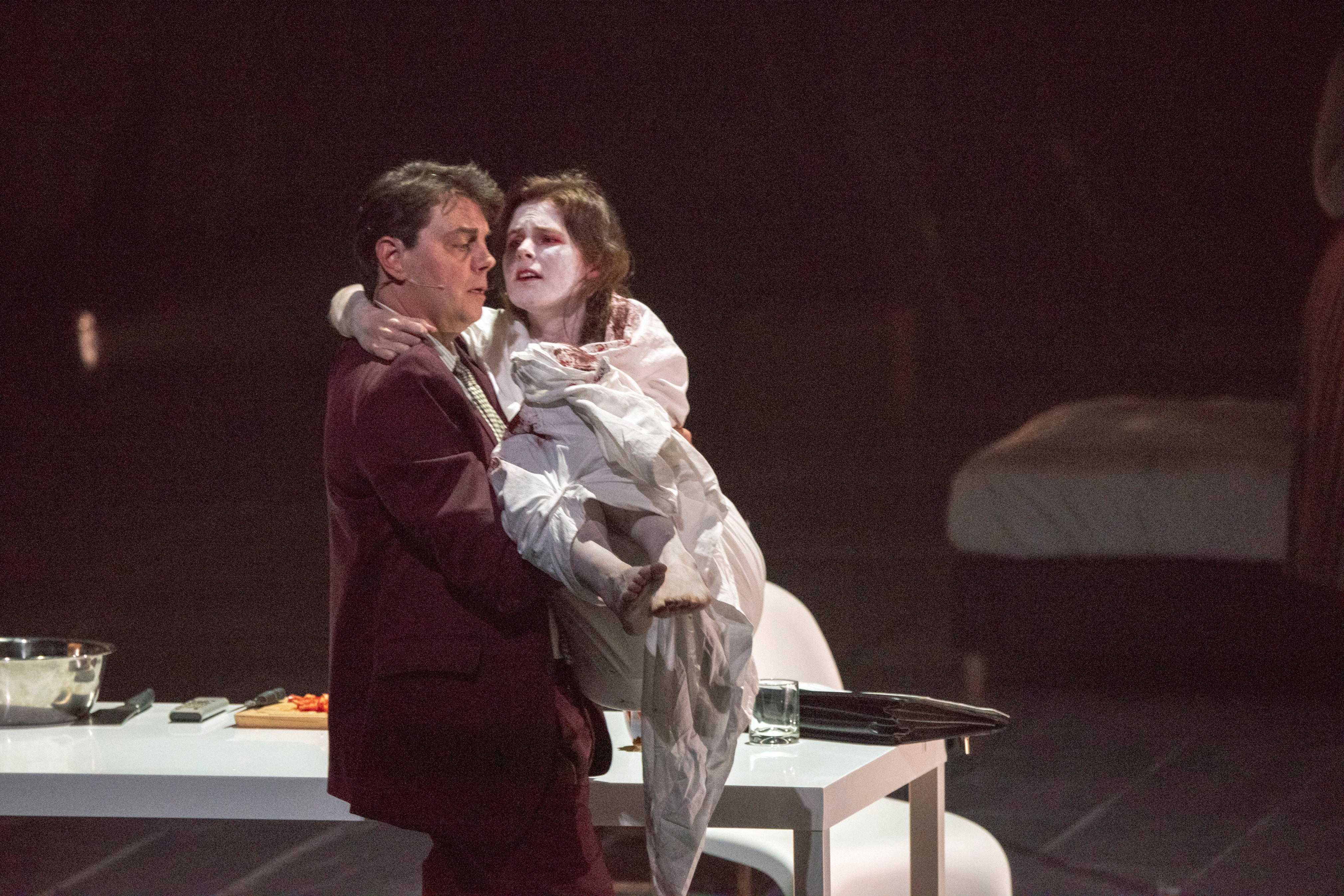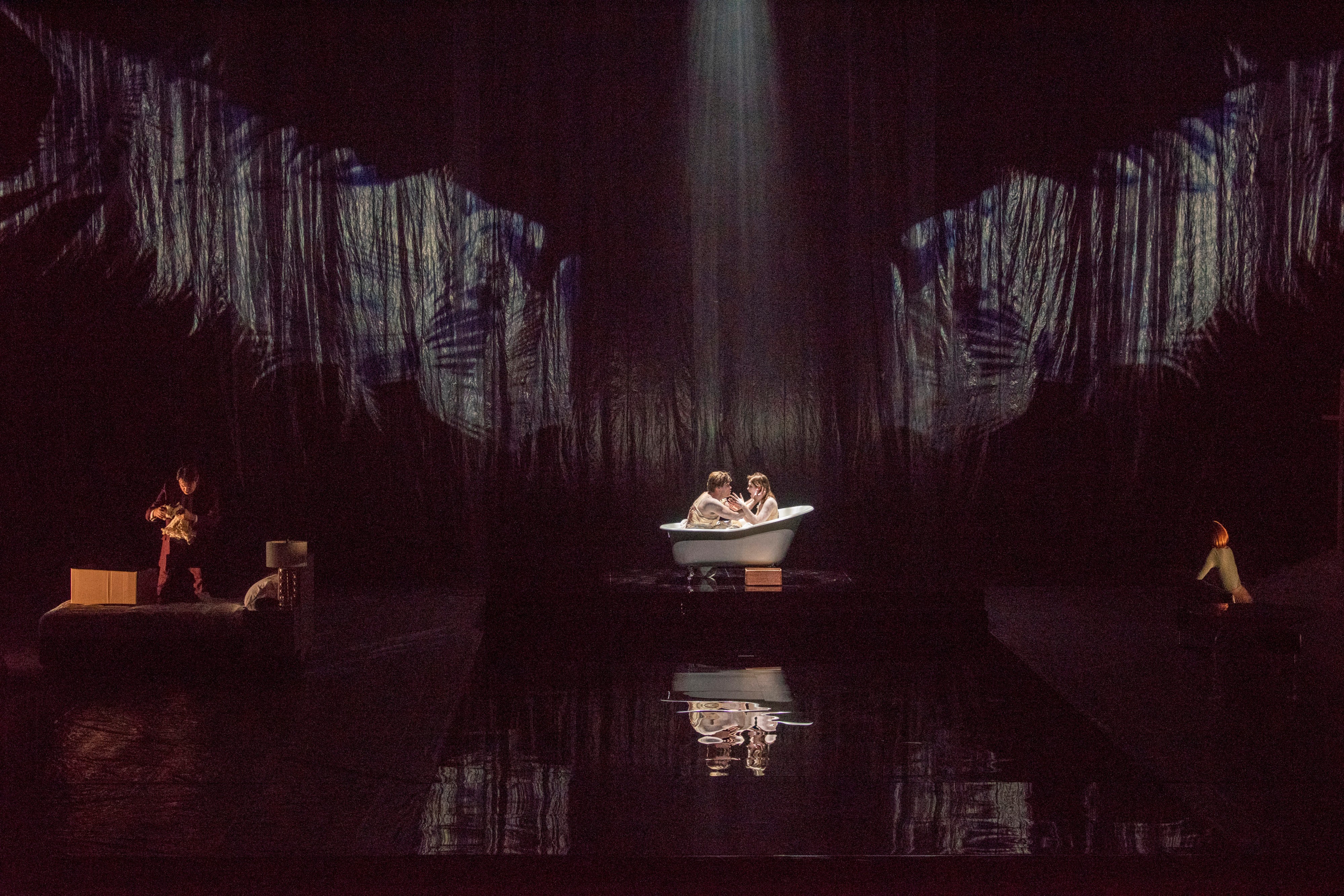 The 2017 Pulitzer Prize winner Angel's Bone follows the plight of two fallen angels whose nostalgia for earthly delights finds them far from heaven. They are found battered and bruised by a man and his wife, known only as Mr. and Mrs. X.E., who have longed for a better life than their modest middle-class status. Nevertheless, Mr. and Mrs. X.E. set out to nurse the wounded angels back to health: they bathe them, wash the dirt from their nails... then lock them in a room, leaving them a claw foot bathtub for a shared bed, and decide to exploit these magical beings for wealth and personal gains.