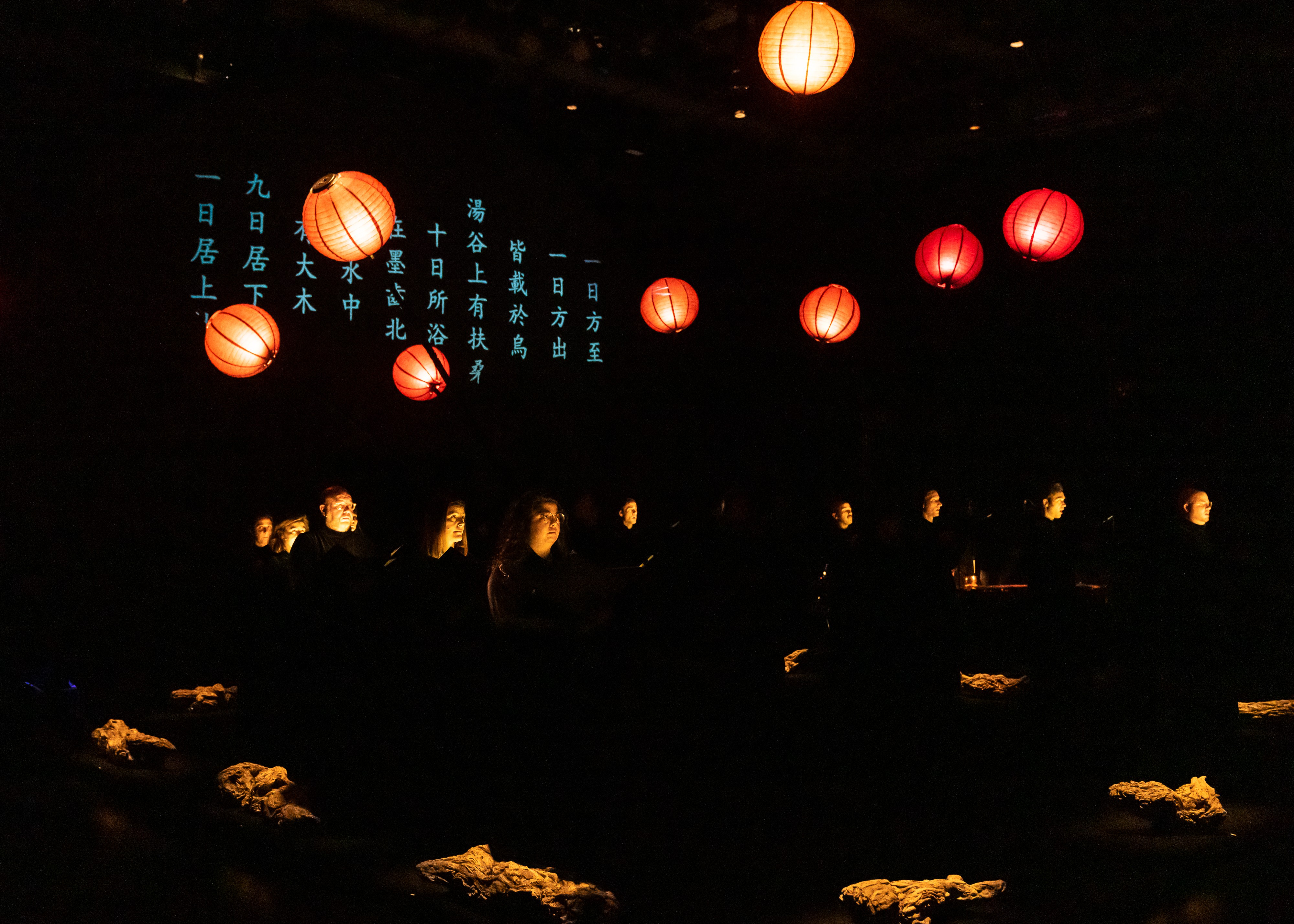 Book of Mountains and Seas is a work of vocal-theater for 12 singers, two percussionists, and puppeteers. It is inspired by the ancient Chinese compilation of early myths of the same title, which was first transcribed in 4th century B.C. Over the years, these mythological stories have become part of Chinese written and oral history, shifted and reshaped to match contemporary times. Book of Mountains and Seas is a 21st-century adaptation through the lens of our modern-day relationship with the natural world. The creation stories conjure a sense of respect and awe for the environment, and the water stories challenge us to be good stewards of the natural resources we have been given.
