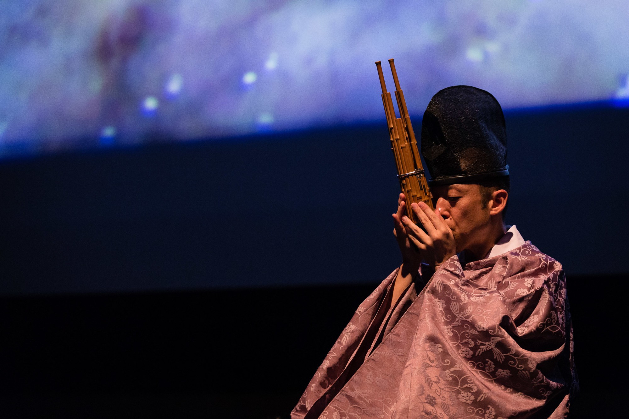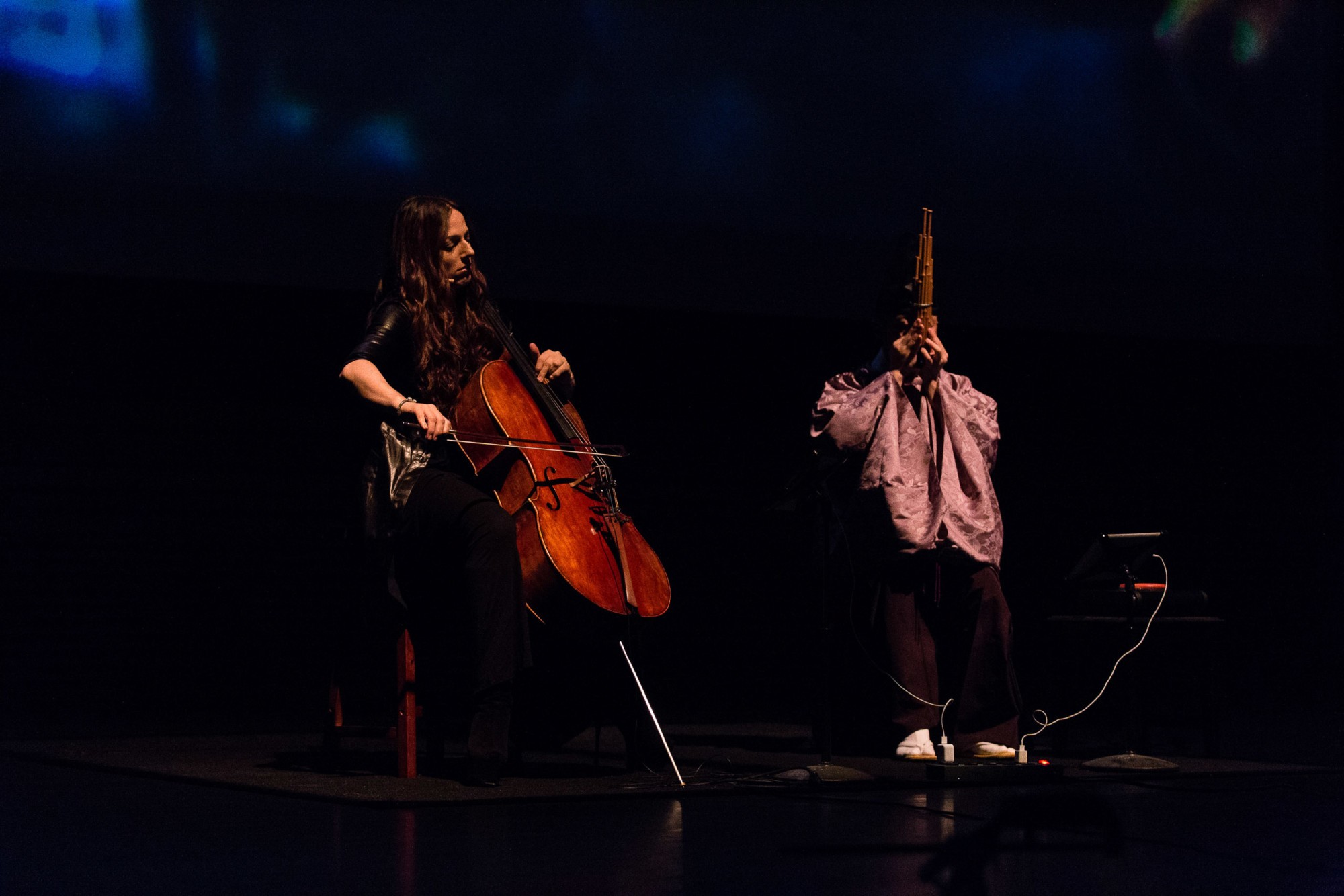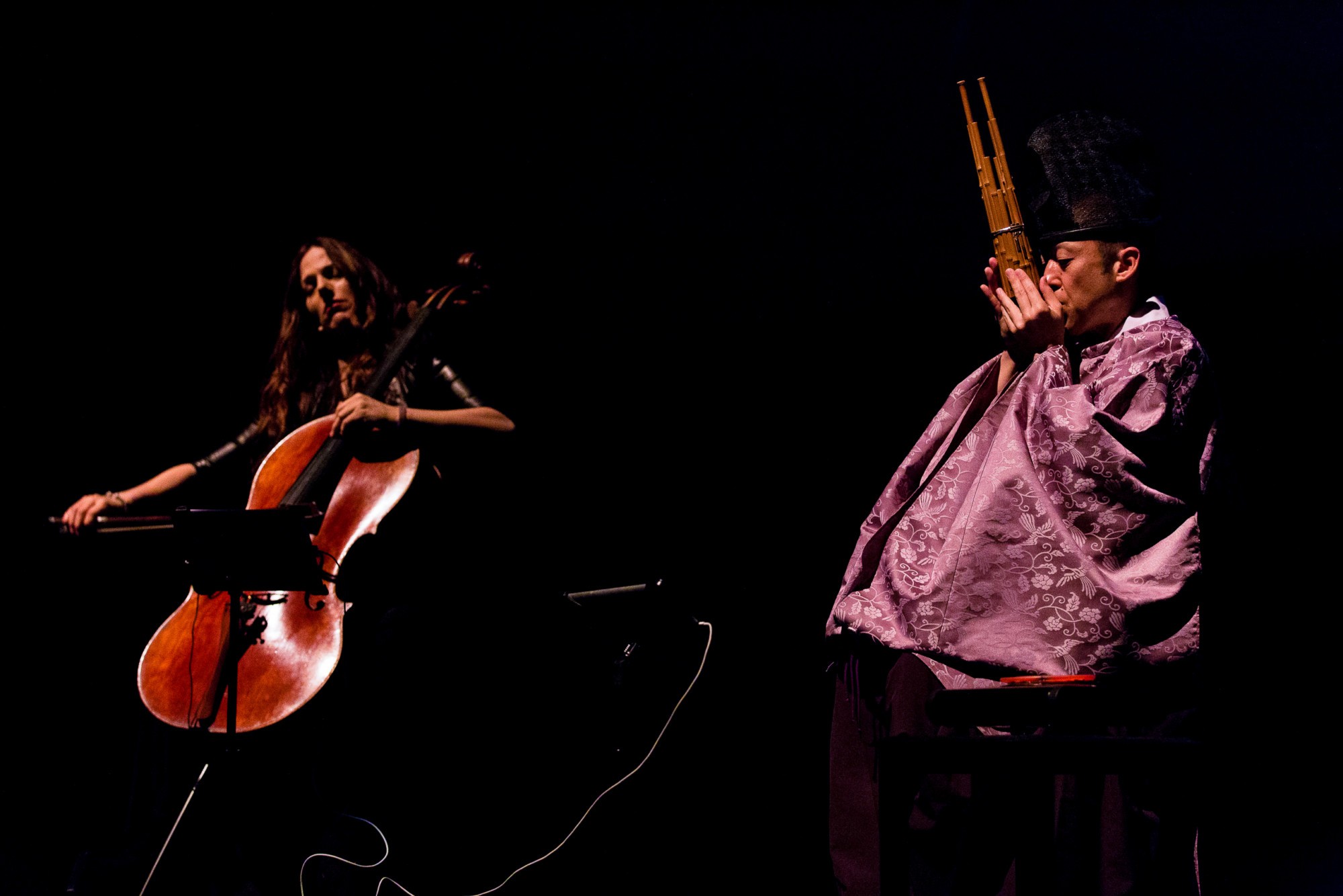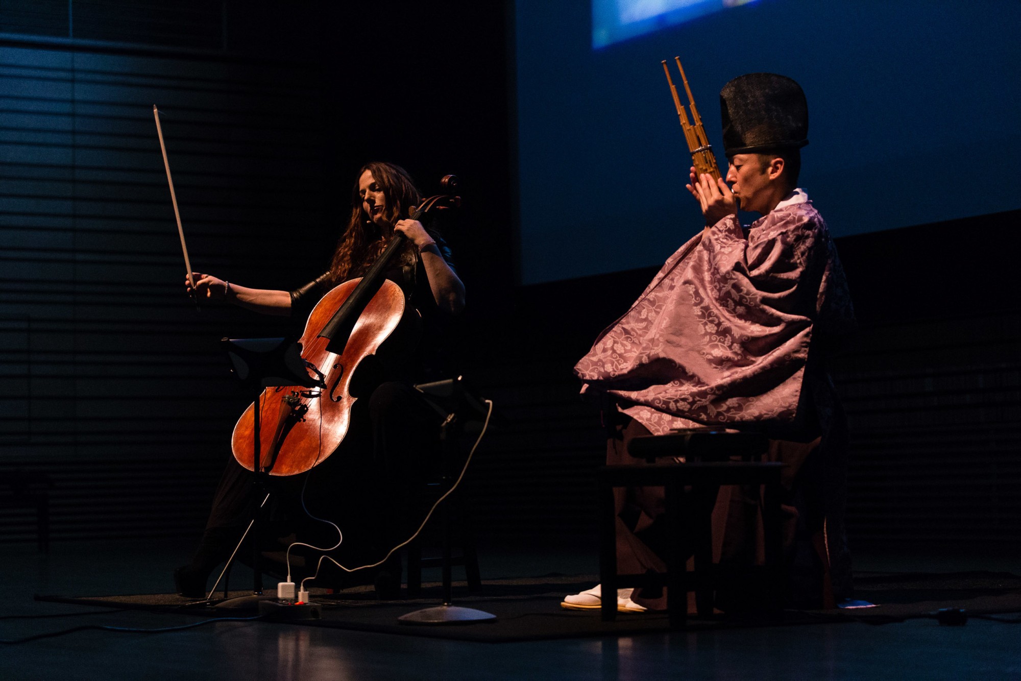 Linked Verse brings together two renowned musicians—SHŌ master Ko Ishikawa and cellist Maya Beiser—in a visually immersive performance environment featuring live 3D stereoscopic video. The soloist will exchange musical passages while sounds and images recorded in Japan and the U.S. undergo an evolving interlinked transformation.