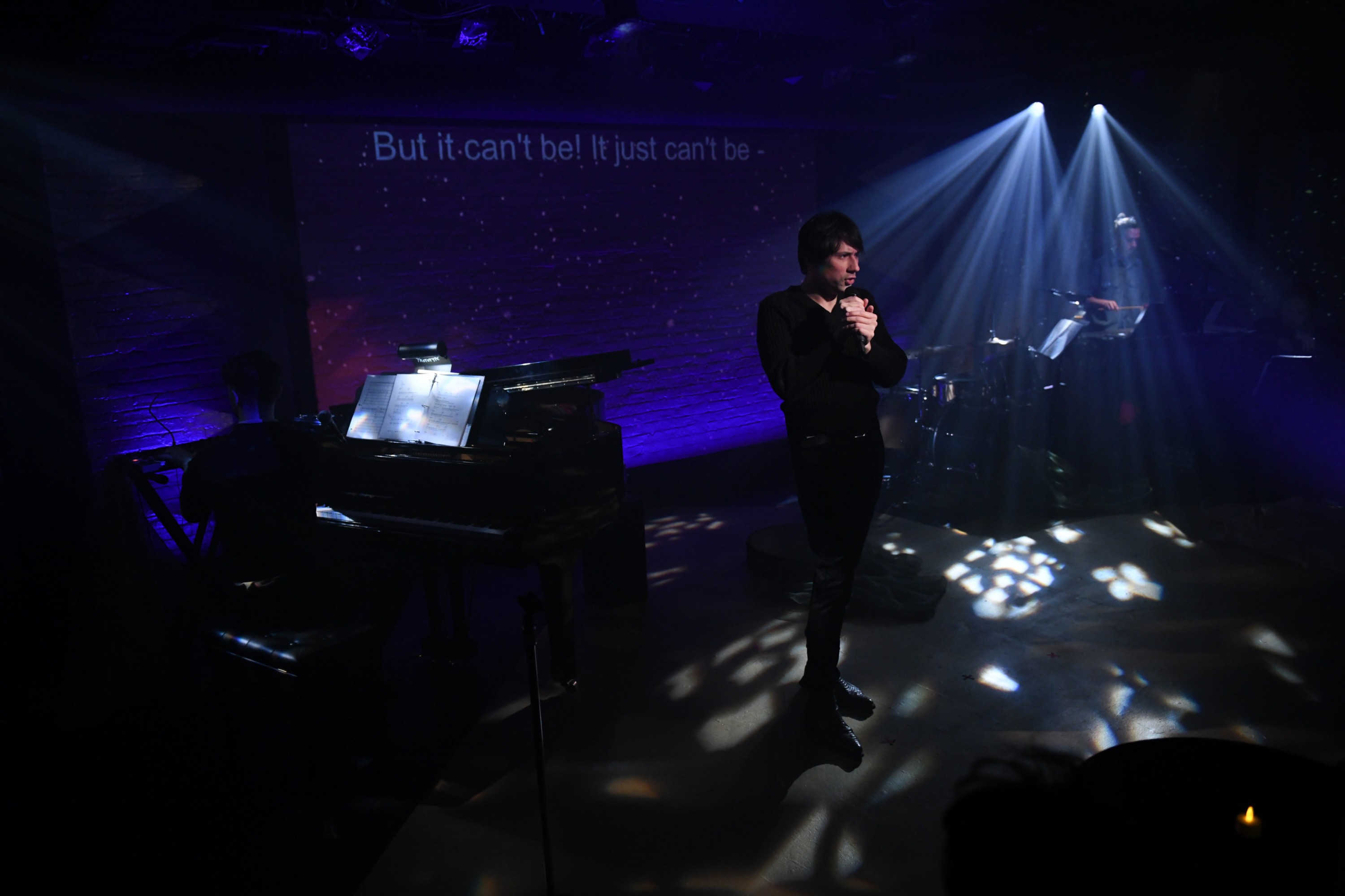 Joseph Keckler and an intimate musical ensemble lead the audience through a series of vignettes, each like a stop on a late-night train- from Paris to Hamburg, Michigan to Times Square and the symbolic space of The Crossroads, a place of danger and possibility. Train with No Midnight dances between comedy, commentary and communion. The score features smoky pop songs, propulsive invocations, and leaps into the operatic realm.